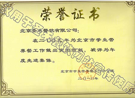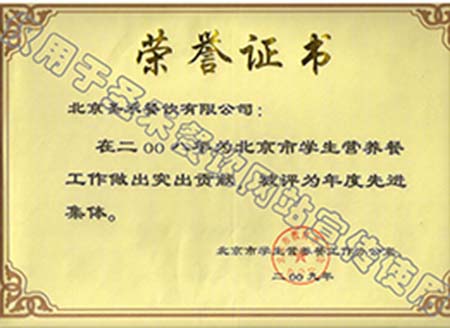 • 2009年北京市学生营养餐工作年度先进单位