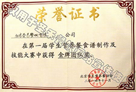 • 第一届学生营养餐食谱制作及技能大赛金牌团队奖