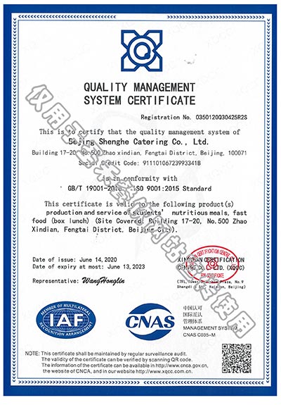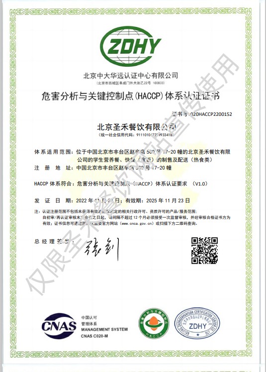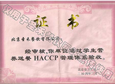• 学生营养送餐HACCP管理体系验收证书