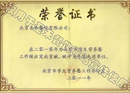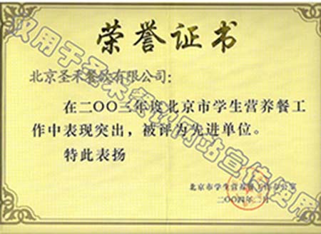 • 2004年北京市学生营养餐工作年度先进单位