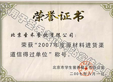 • 2007年度原材料进货渠道信得过单位